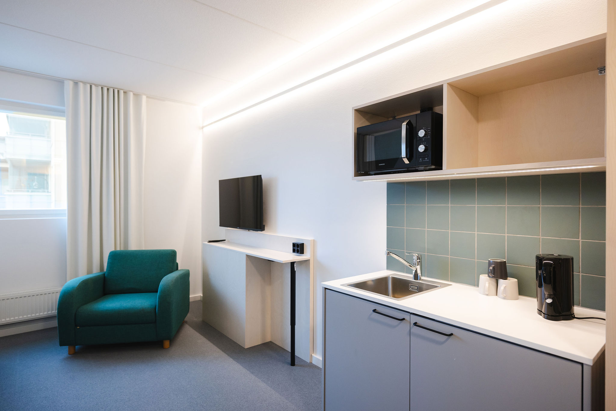 Raikkaat värit ja aidot luonnonmateriaalit luovat GreenStarin huoneisiin pehmeän ja rauhallisen tunnelman. Rakennuksen energiatehokkuus tekee huoneista myös hiljaisia.